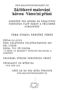 - 3„Znáš ten pocit, když se zastaví čas a všechno kolem ztichne? 🕯️ Káva, která voní... a pod tvými prsty se mění v jemný odstín hnědé. Přijď si odpočinout na zážitkový kurz malování kávou – místo, kde se nikdo nesoudí, kde si můžeš jen tak být. Bez tlaku, bez očekávání. Jen ty, štětec a klid.“ ☕🎨